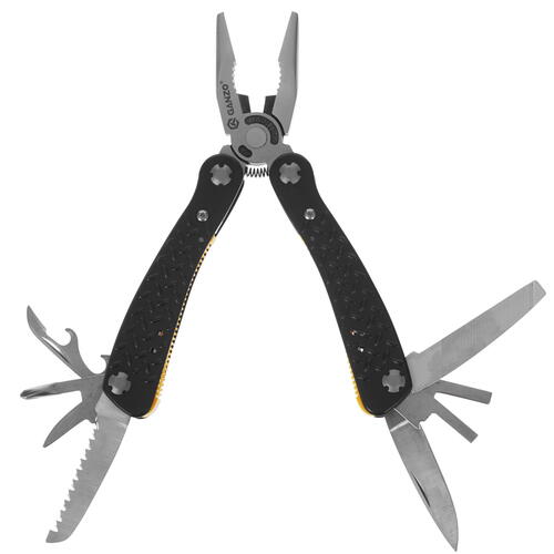 битодержатель, комплект сменных бит, консервный нож, крестовая отвертка, кусачки для проволоки, напильник, нож, нож-серрейтор, отвертка плоская, открывалка для бутылок, пассатижи, переходник для бит, шило